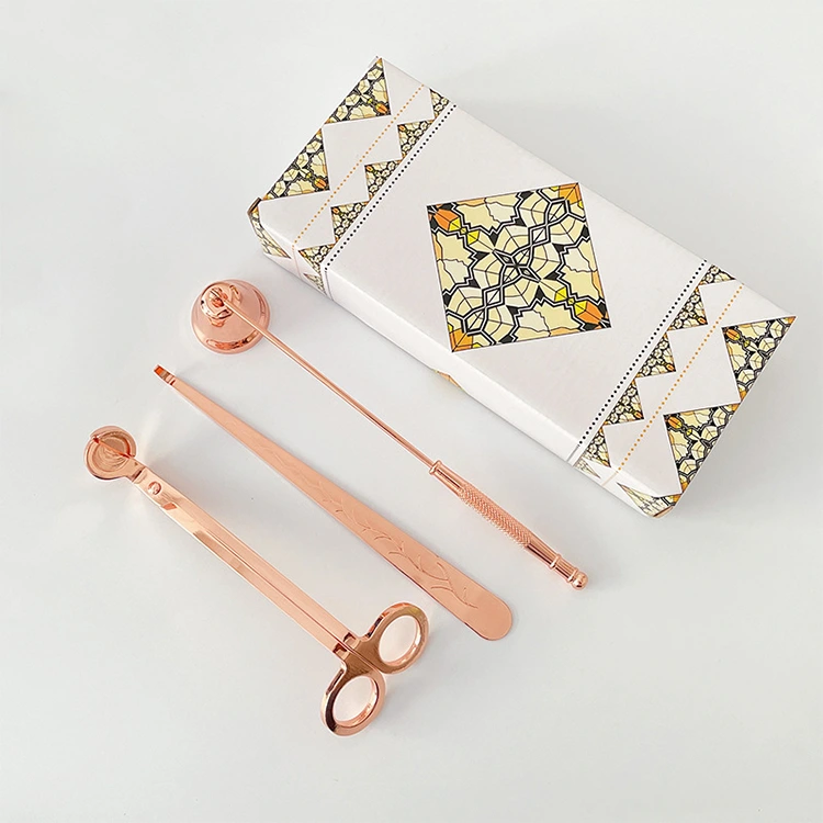 Dari segi penampilan, set alat ini ditawarkan dalam empat kemasan elegan dan abadi: emas, perak, emas mawar dan hitam. Kemasan ini direka bentuk untuk memadankan pelbagai jenis bekas lilin, gaya hiasan rumah dan persekitaran paparan komersial, daripada dalaman moden minimalis kepada tetapan klasik dan mewah. Setiap kemasan mengekalkan kilauan dan keanggunannya dari semasa ke semasa, berkat proses penyaduran elektrik dan penggilap manual yang berkualiti tinggi.